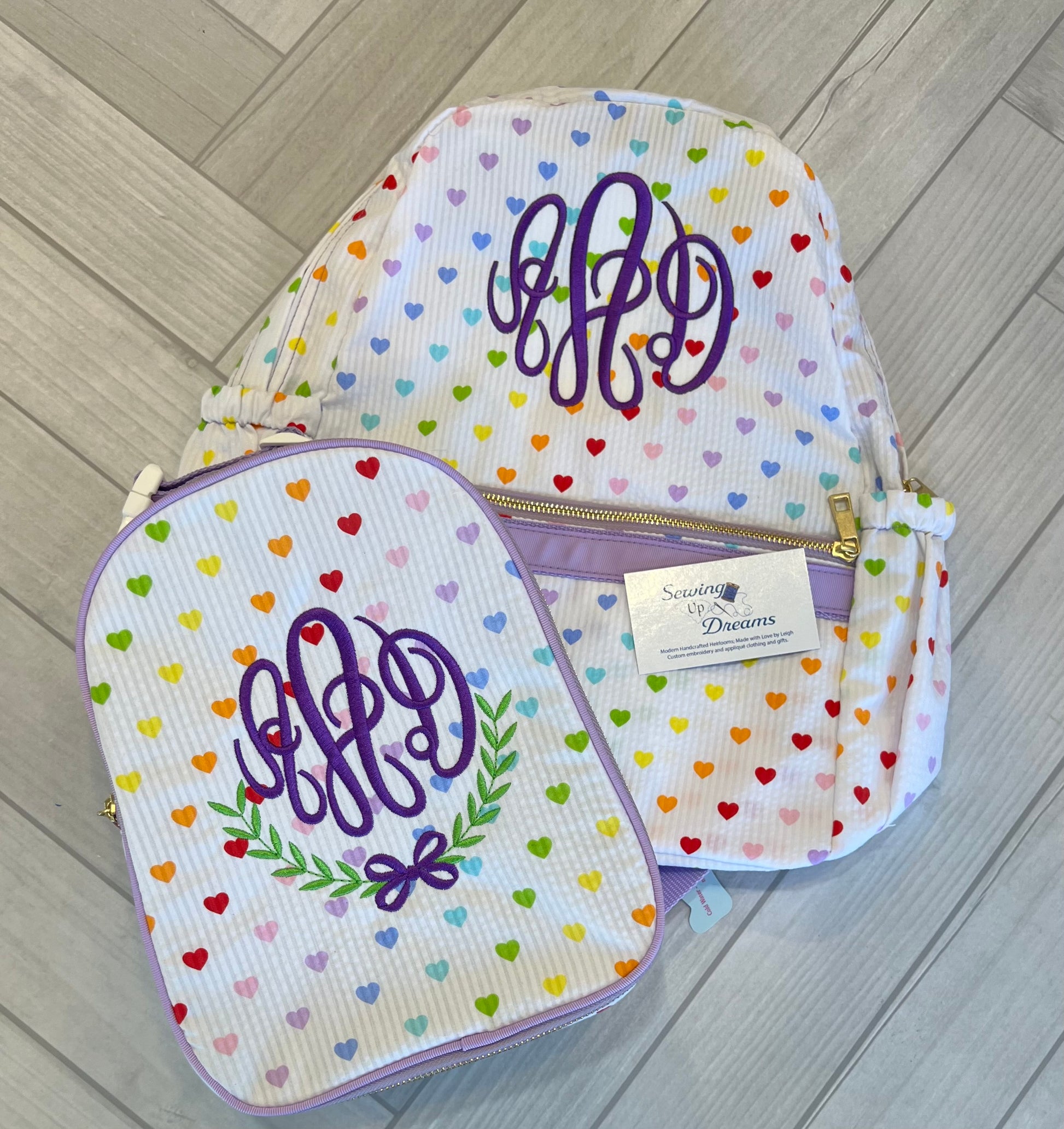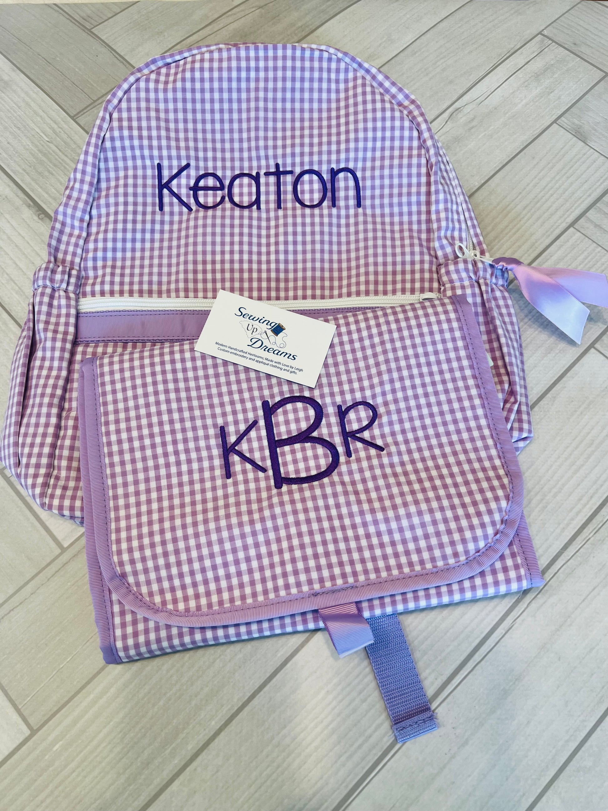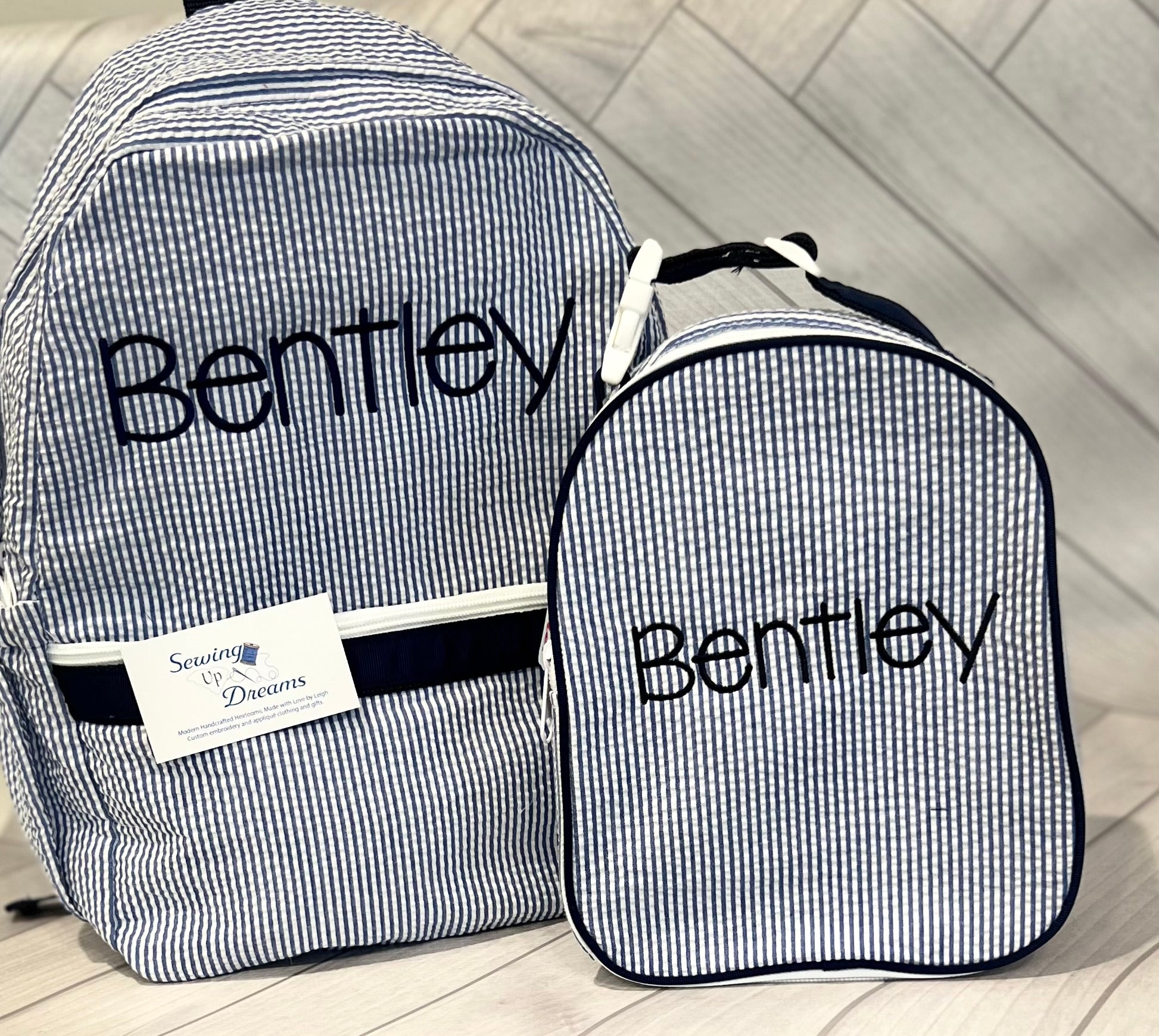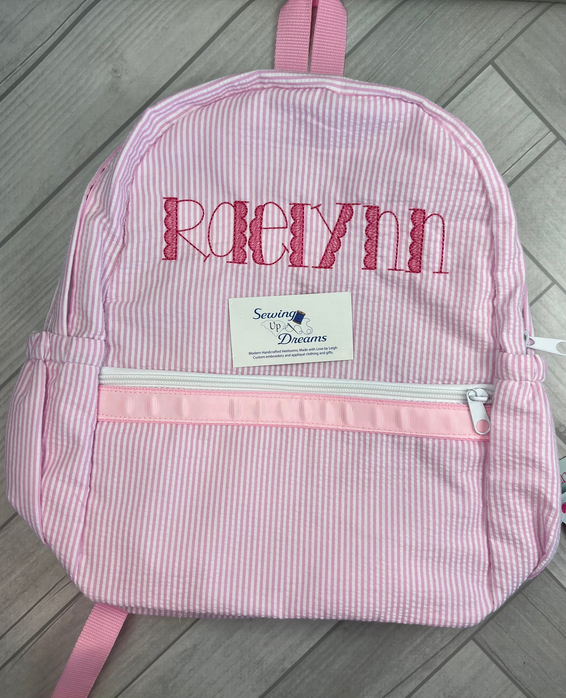 Large Backpack, Personalized Seersucker with Pockets