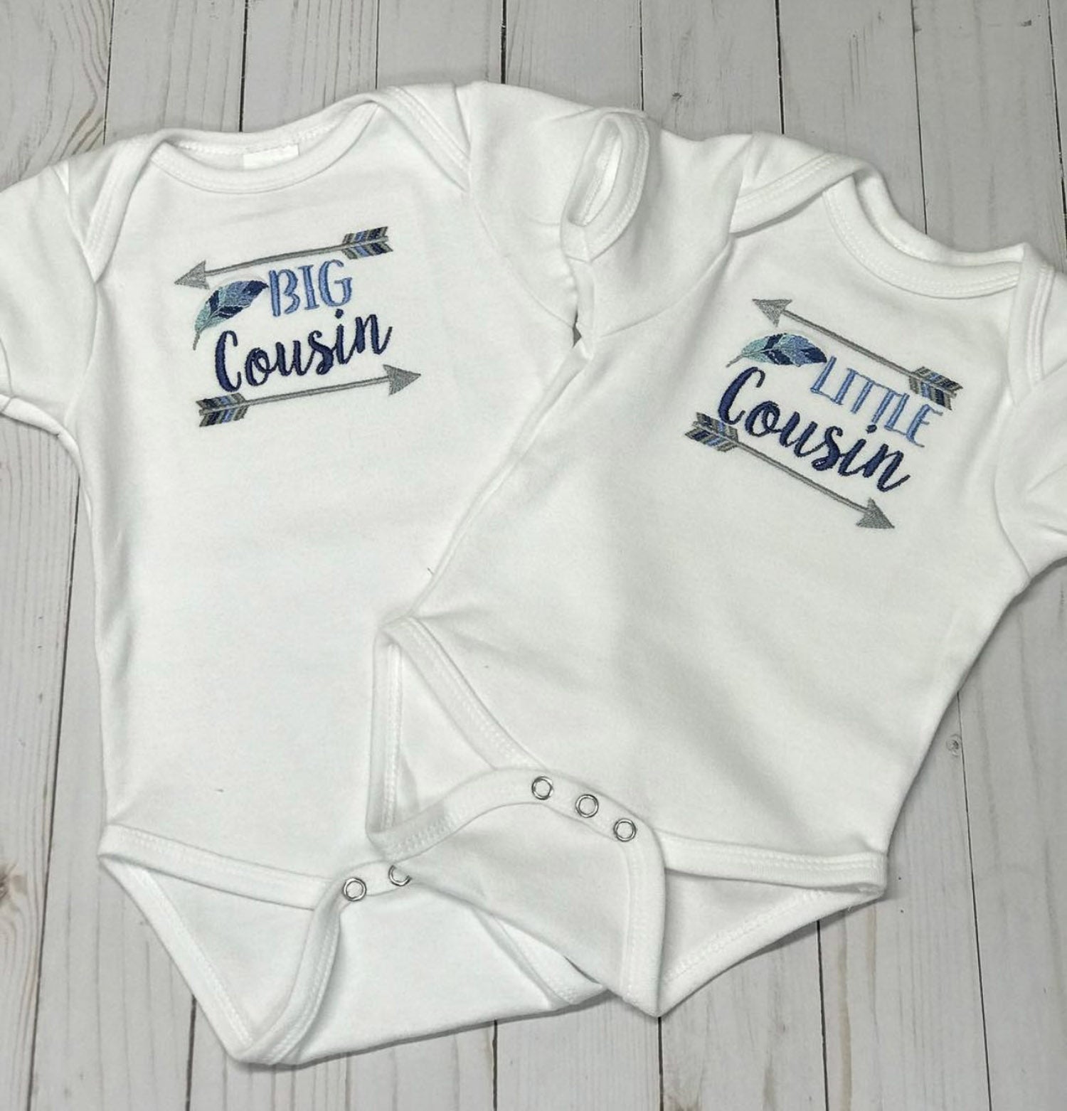 This is a set of sibling customized shirts and bodysuits for all brothers and sisters. The shirts are great for a get way to welcome a new member of the family, personalized pictures, or even the entire family's Christmas Photo. Shop from Sibling Sets so each member of the family can shine while matching with custom fabrics and colors.